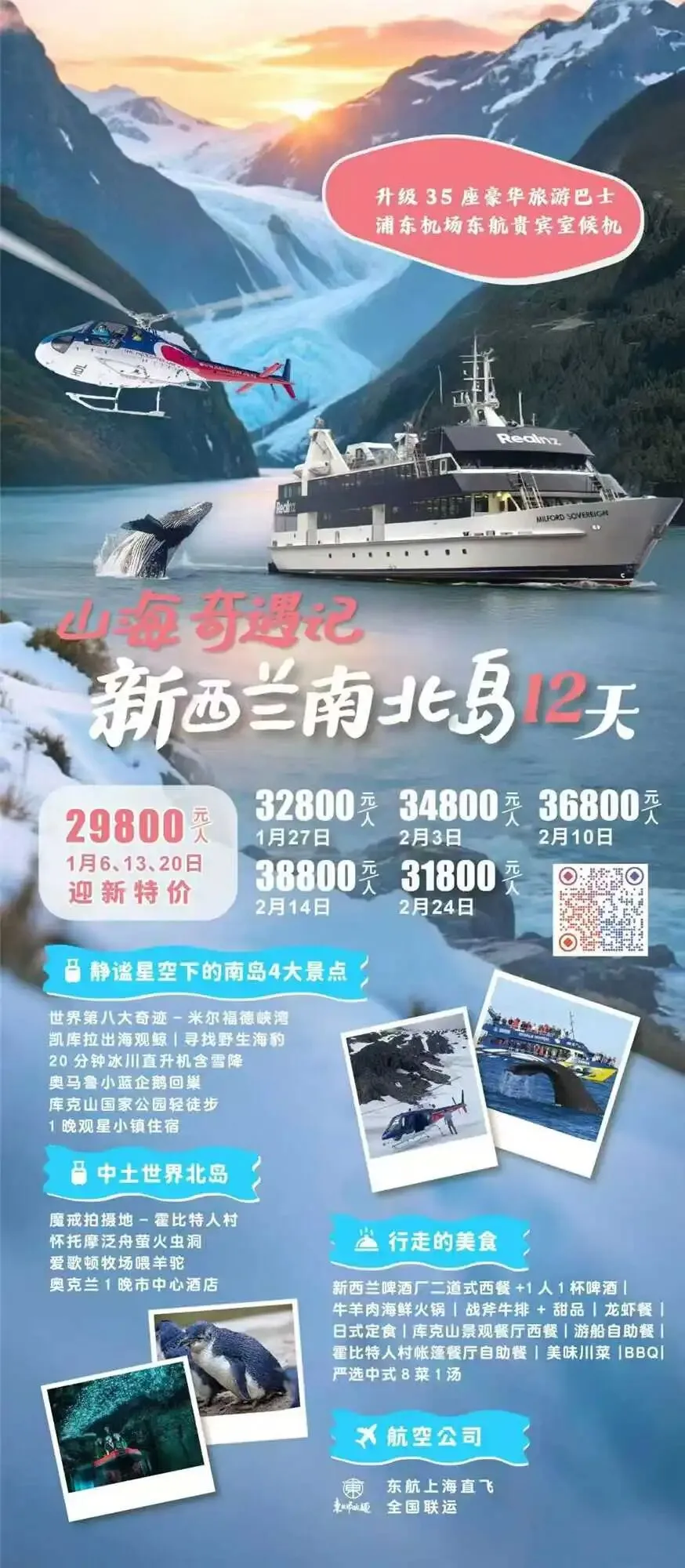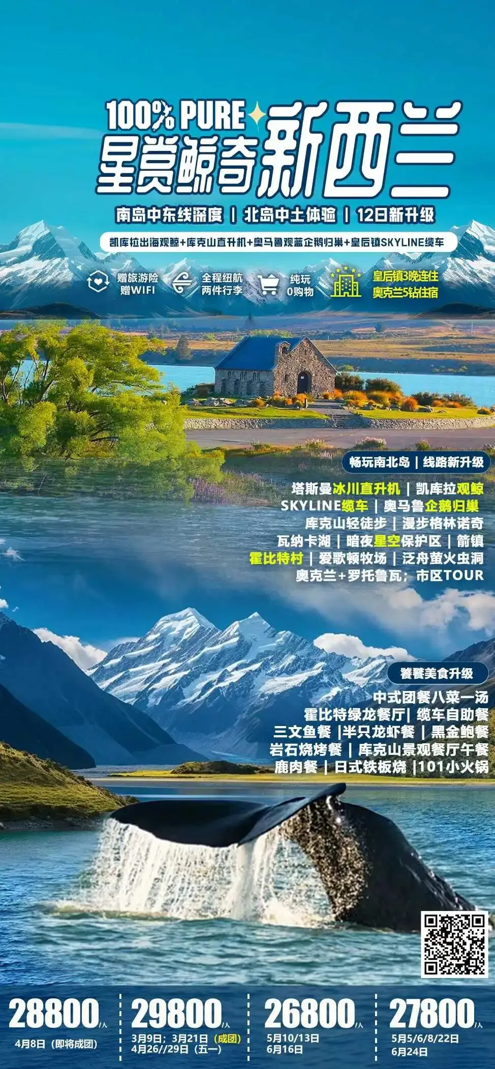 观鲸篇 一价全含 魅力双冰川 新西兰一地南北岛全景14日