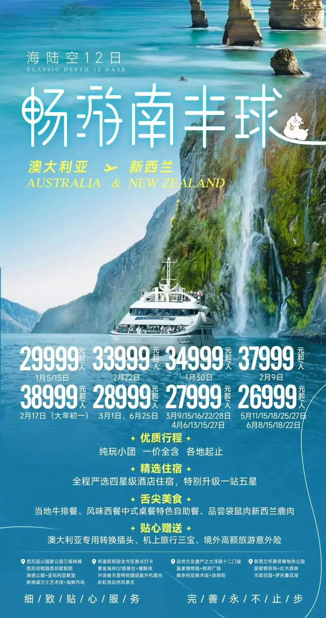 🏨酒店:全程严选澳新四星级酒店住宿,升级一站五星;