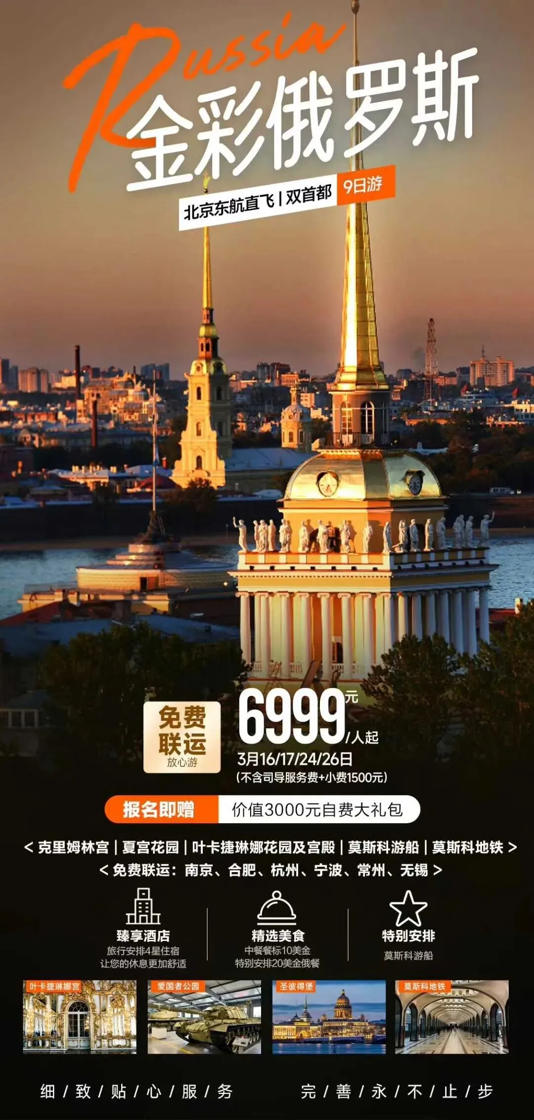 🌇全程精选四星级酒店 莫斯科三晚连住 彼得堡四晚连住