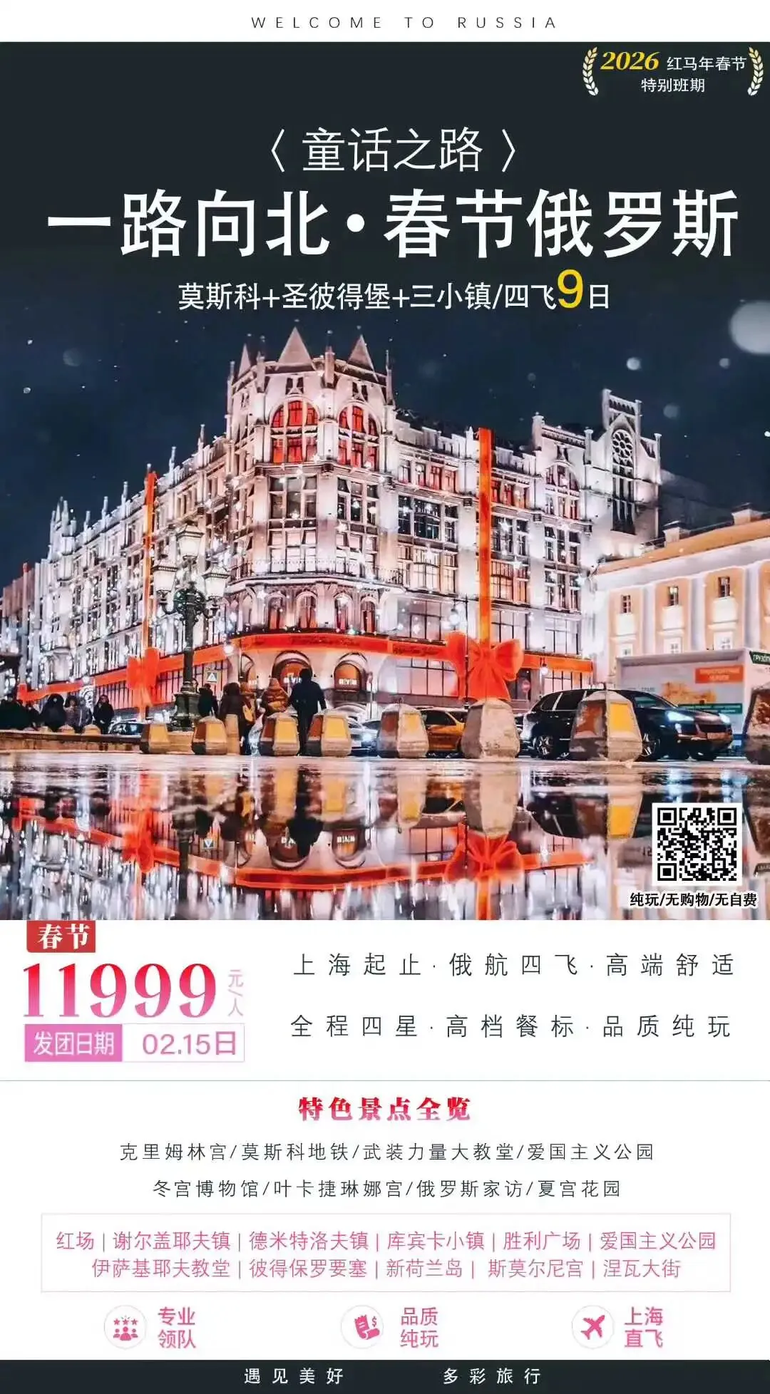 2026春节<四星俄罗斯9日纯玩>
