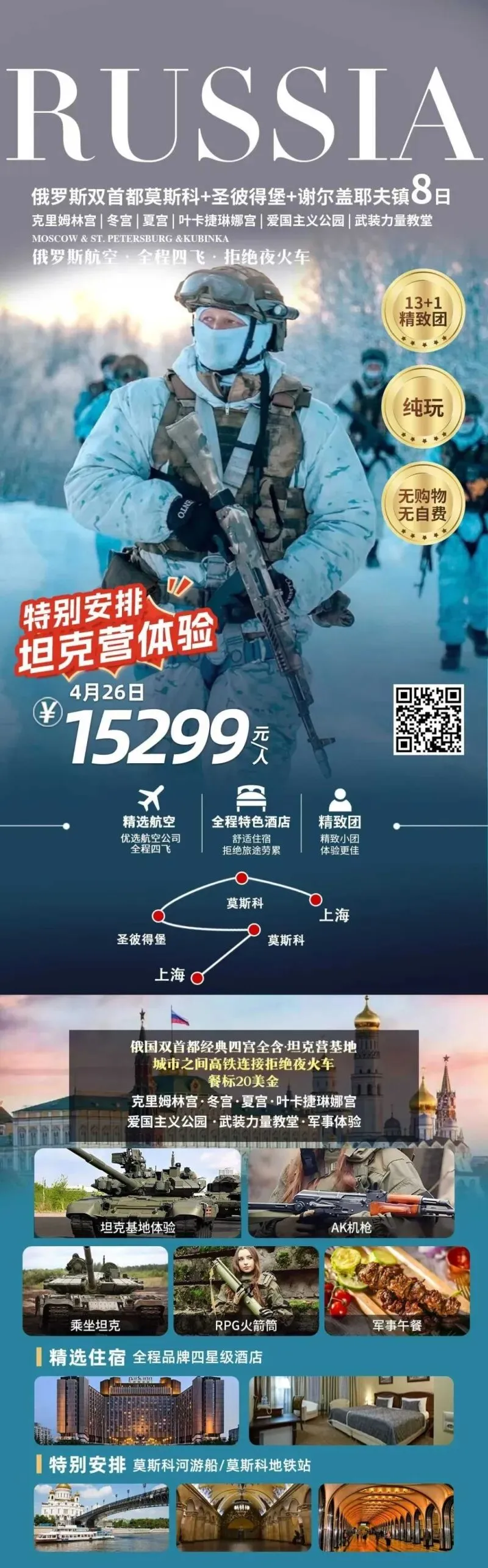 特别安排:坦克营体验/莫斯科河游船/莫斯科地铁站