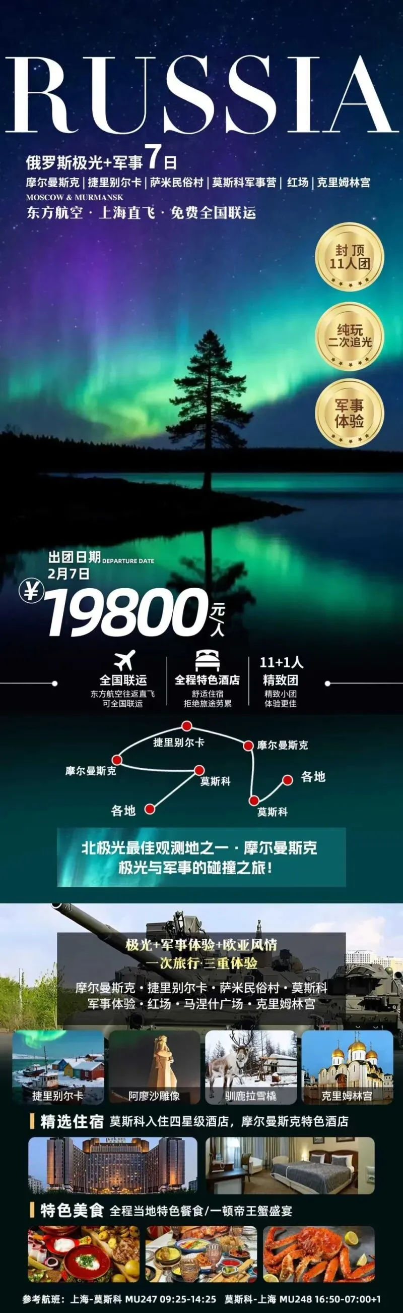 🗺️ 行程亮点:极光+军事+欧亚风情,一次玩透俄式硬核浪漫