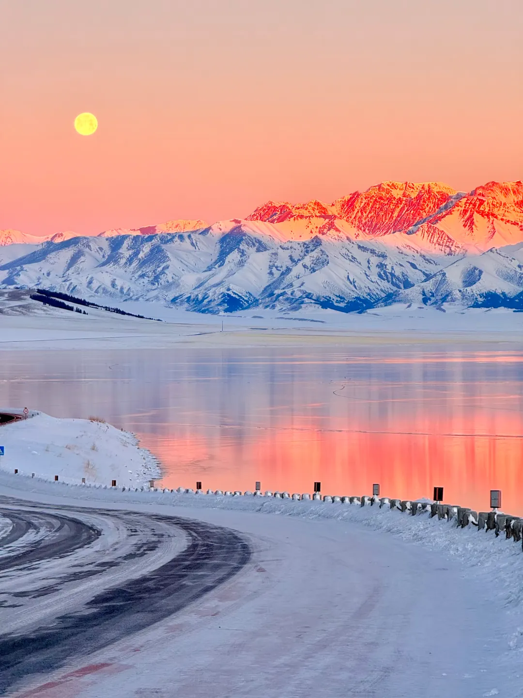 赛里木湖:“大西洋最后一滴眼泪”,5 月底至 6 月湖边野花盛放,环湖自驾可近距离接触湛蓝湖水,远眺雪山;
