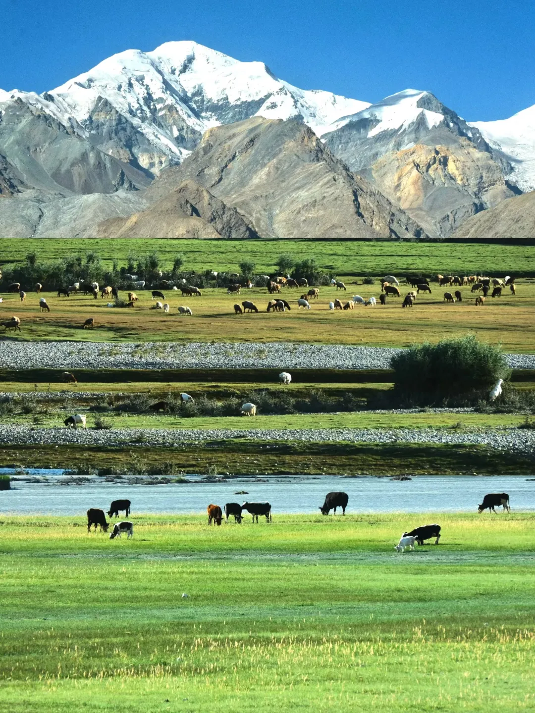 帕米尔高原:慕士塔格峰(冰山之父)、卡拉库里湖、石头城、金草滩,雪山湖泊相映,塔吉克族风情浓郁,需边防证;