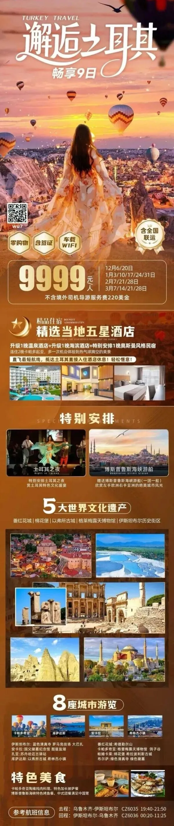 【3U·免签土耳其·0自费0购物】10天7晚,8999起/人