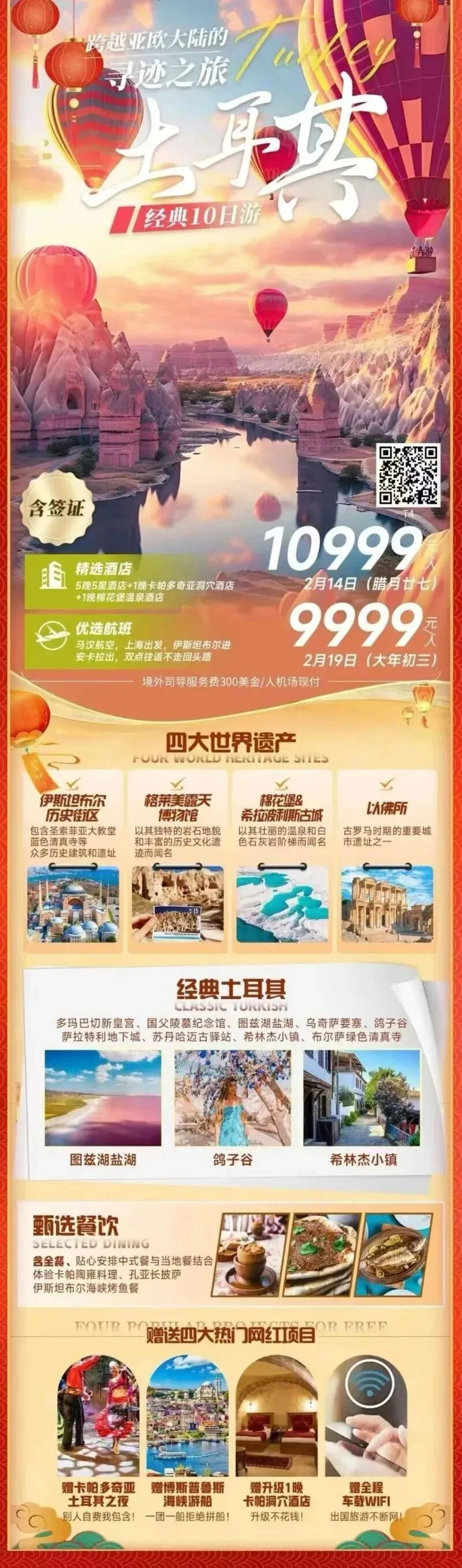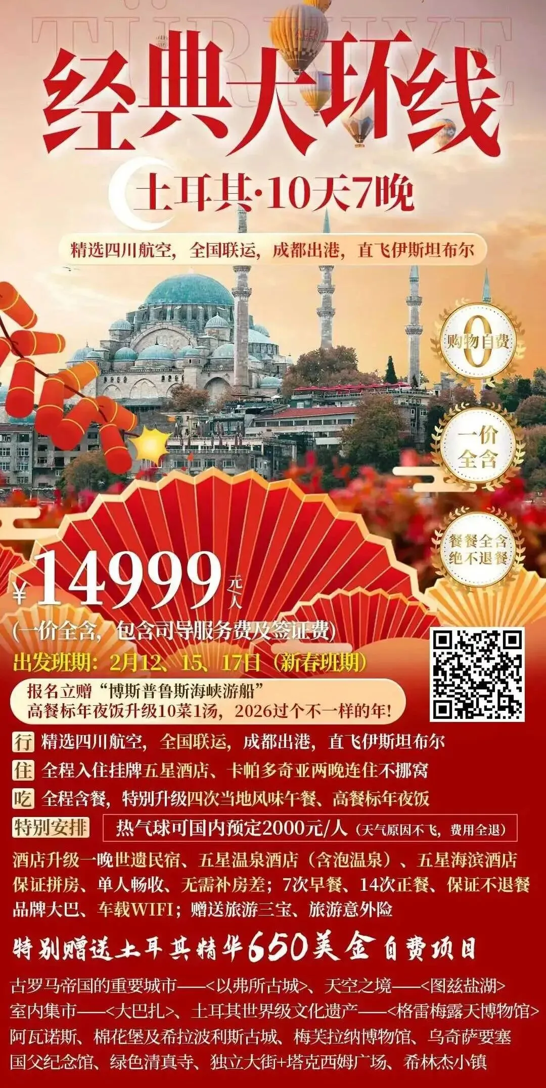 【川航·春节🎊土耳其·0自费0购物】10天7晚,高餐标年夜饭