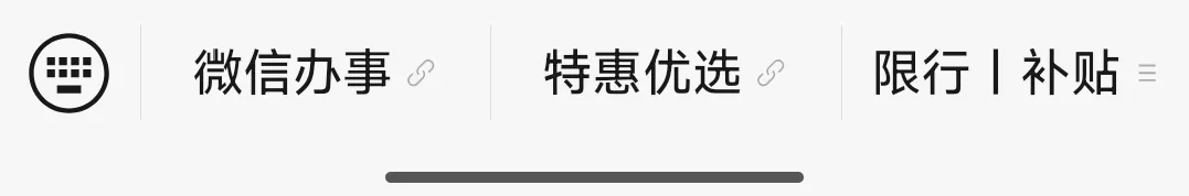 ➤可以在下方菜单栏点击微信办事,特惠优选,限行|补贴获取你想看的内容: