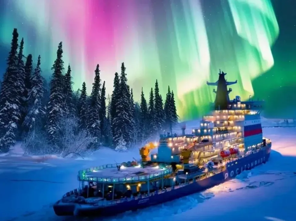 12月至次年3月是俄罗斯的冰雪季,摩尔曼斯克位于北极圈内,是观赏极光的绝佳地,大概率能邂逅绿色极光舞动夜空。
