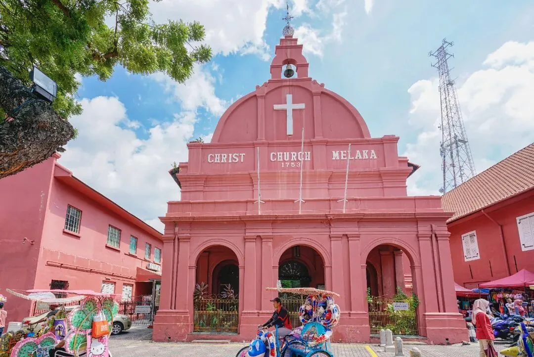 马六甲的荷兰红屋、圣保罗教堂见证了殖民历史,郑和船队留下的“中国风”与东南亚风情交融,粉红色的荷兰广场是打卡必去之地。