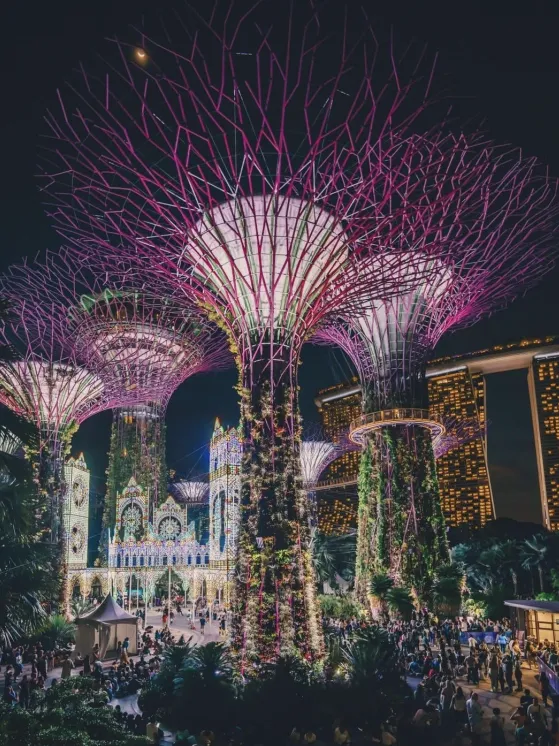 12月的圣诞季的氛围格外浓厚,乌节路的圣诞装饰璀璨夺目,街头有圣诞市集和表演;滨海湾花园的超级树灯光秀在夜晚上演,搭配旁边的金沙酒店夜景,构成新加坡的标志性画面。
