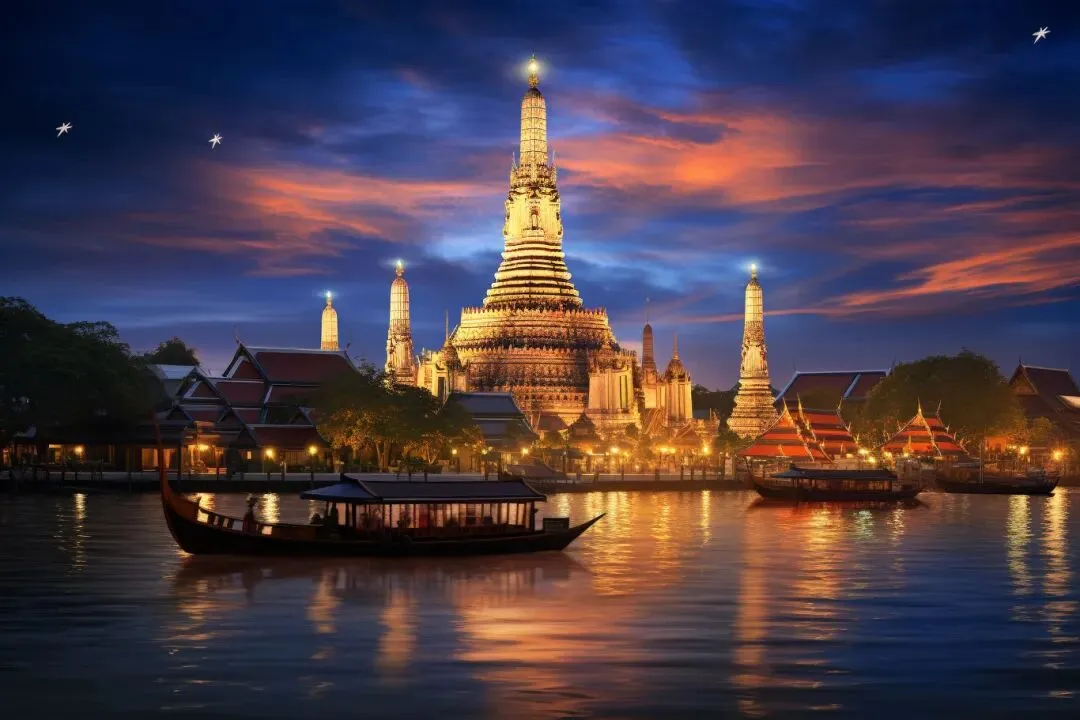 曼谷大皇宫的金顶在阳光下熠熠生辉,郑王庙的马赛克镶嵌画在夕阳下格外璀璨。