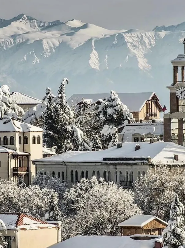 高加索山脉的冬季银装素裹,是滑雪和徒步的胜地。