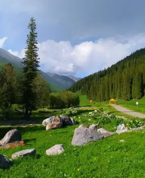 库尔德宁景区位于伊犁巩留县东南部山区,这里有峡谷、森林、田园和雪山等多种风光。景区内有许多珍贵的云杉,也被视为云杉自然保护区。