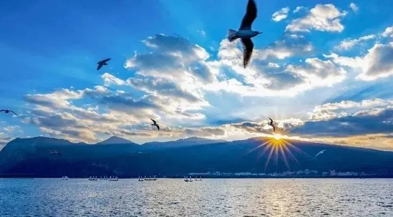 海埂公园,始建于六十年代初期,坐落于昆明市南郊滇池湖畔,是走进滇池、观赏滇池、了解滇池的第一站,也是昆明人的母亲河和昆明人心中的海。在公园里,五百里滇池浩瀚无边,碧波荡漾,俊秀的西山,隔水相望,一条海埂大坝直通山下,主要有画阁、石舫、观海长廊、草坪、樱花林等景点,宛如身临仙境,令人心旷神怡、乐在其中、流连忘返。海埂,顾名思义就是横海之埂,原是一条由东向西的楔形长堤。东起海埂村,西至西山脚,将滇池一分为二,埂南为浩淼的滇池,埂北为“草海”。自然分为四大景区,东面为国家体育冬训基地,中部为沙滩浴场,西面为公园游览区,北面沼泽地为疗养区和旅游中心。如今,十里长堤绿树成荫,与滇池融为一体,蓝天白云,展示了独特的海滨风情。草地上,游人搭起了帐篷,享受家人聚会的天伦之乐,或度过惬意的时光。沿湖的健康步道,既可以徒步,也可以骑行,让人感受到什么天高云淡、海阔天空。