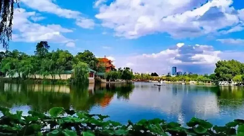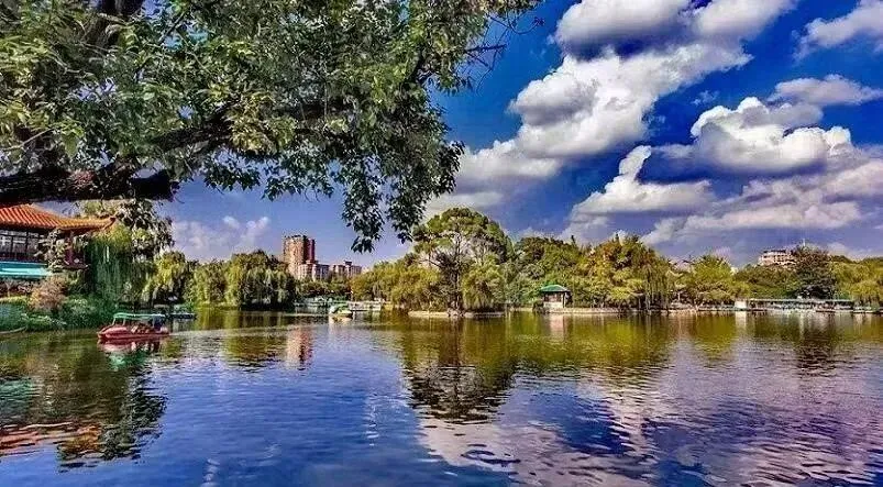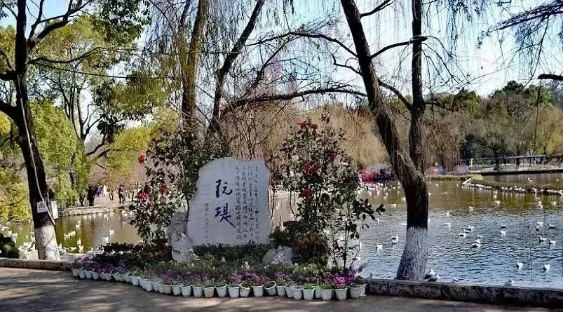 翠湖 ,原名菜海子,位于五华山西麓,因湖东北有“九泉所出,汇而成池”,故又名“九龙池”。其八方碧水,春夏皆绿,四季竹翠,故称翠湖,被誉为镶嵌在昆明城的“绿宝石”。据史料记载,翠湖原本是一个湖湾,通过洗马河与大观河连通滇池。兴修水利之后,使得滇池水位下降,洗马河在昆明的发展中逐渐沦为一条暗河,翠湖便与滇池分开。从此,翠湖便成了一个独立的湖泊,成为昆明人的「后花园」。“十亩荷花鱼世界,半城杨柳抚楼台”,翠湖公园主要景点有阮堤、积翠楼、云南解放纪念馆、云南陆军讲武堂旧址、卢汉公馆、李公朴先生殉难处、朱德旧居、会泽院等,既有自然美景,又有人文景观,被誉为“城中美玉”。特别值得一提的是,每到冬季,有上万只红嘴鸥来此越冬,为翠湖增添了无限的野趣。每年11月到次年3月,在湖心亭投食喂鸥,亦成为春城一大亮色,“翠湖观鸥”被誉为昆明胜景。9、大观楼
