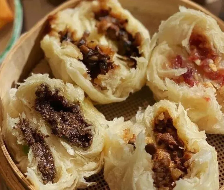 破酥包是昆明独具特色的传统面点,因外皮层层酥脆、一碰即“破”而得名。采用特殊发酵与擀叠工艺,使包子皮酥而不腻,入口掉渣。馅料分甜咸两类:甜馅多用豆沙、芝麻或火腿白糖;咸馅则以鲜肉、冬菇、笋丁为主。热腾腾咬开,酥皮与鲜香内馅交织,是本地人钟爱的早餐与茶点。