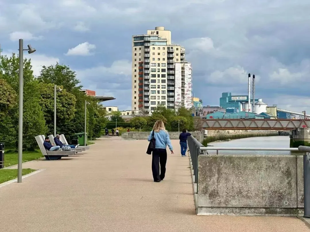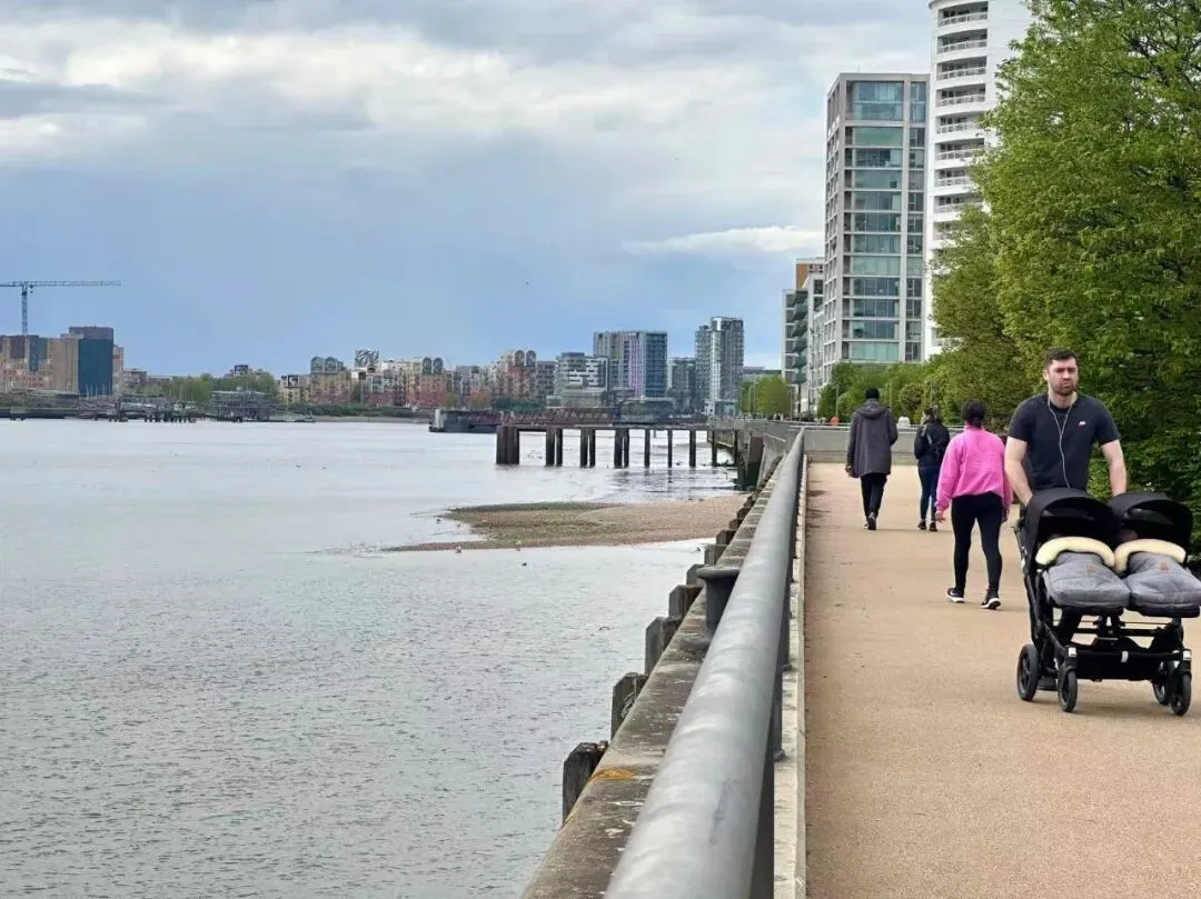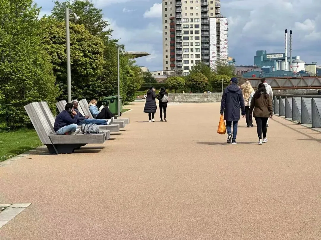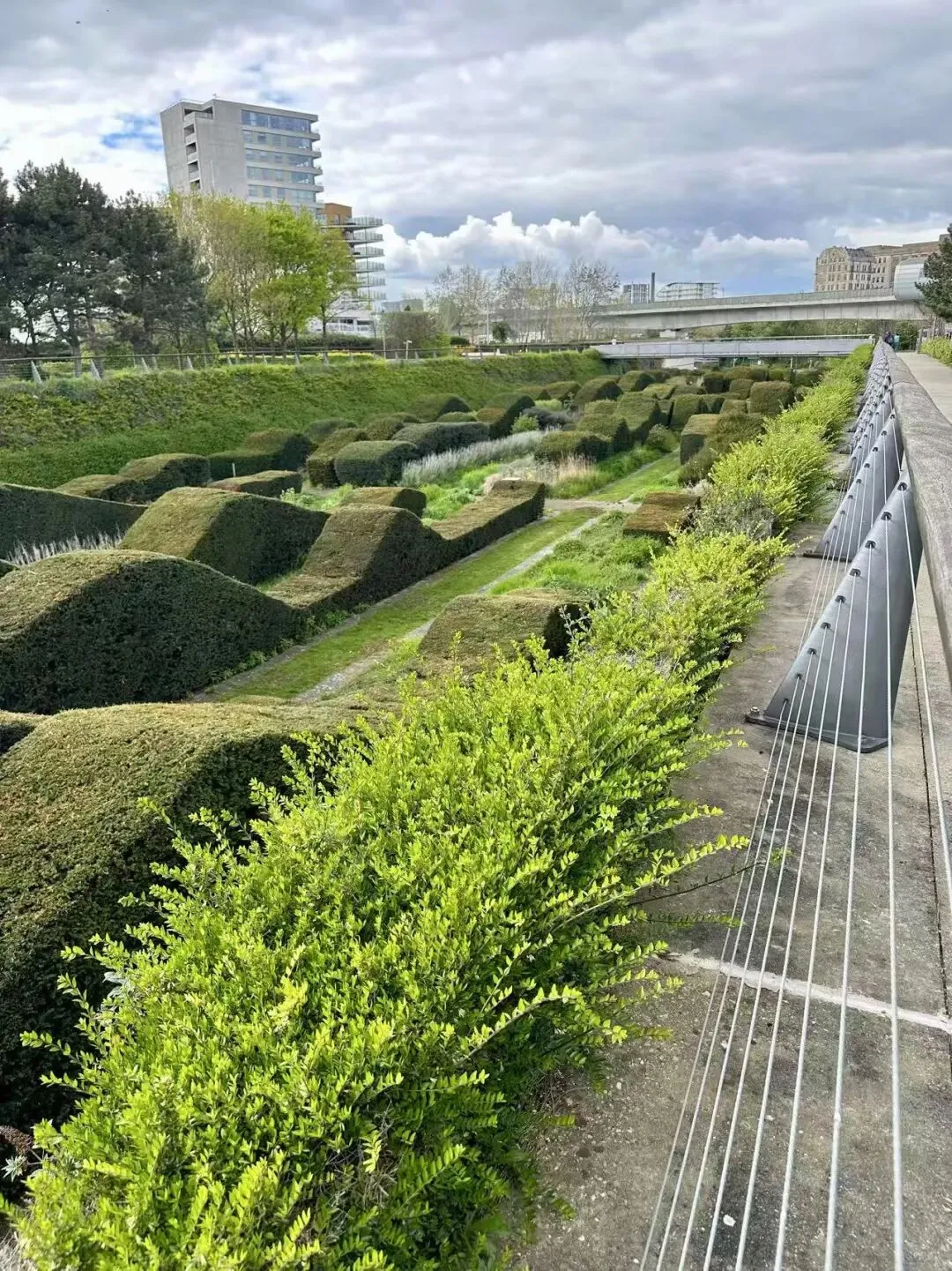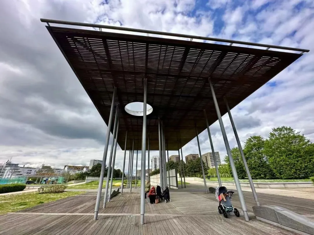 伦敦最被低估的景点:The Thames Barrier (泰晤士河防洪闸)提起伦敦知名的景点,大多数人首先想到的很可能是大本钟、伦敦眼、白金汉宫、塔桥、伦敦塔、圣保罗大教堂及各大博物馆等等这些耳熟能详的名胜古迹。其实,伦敦还有一个鲜少有游客光顾的景点,那就是位于东伦敦泰晤士河上的防洪闸。 泰晤士河防洪闸总长度大约520米,是世界上最大的可移动防洪闸之一。英国著名媒体《泰晤士报》(The Times)把泰晤士河防洪闸评为伦敦最被低估的景点。 泰晤士河防洪闸公园(The Thames Barrier Park)则是一处融合现代工程奇迹与自然美感的公共空间。紧邻著名的泰晤士河防洪闸,是伦敦近年来最具代表性的滨河景观公园之一。这里不像伦敦的八大皇家公园那样广为人知,却以其独特的地理位置、现代景观设计和深厚的城市背景,吸引着那些真正愿意探索、感受伦敦这座城市的人们。 公园的存在,首先离不开泰晤士河防洪闸这一宏伟的工程。历史上,泰晤士河多次洪水泛滥。防洪闸建成于20世纪80年代,是英国最重要的水利工程之一,是为了应对北海风暴潮和潮汐洪水对伦敦市中心造成的威胁而耗费巨资修建的。 这座银白色的闸门横跨河面,线条简洁流畅,外形硬朗富有力量感,既是工业文明的象征,也是一道守护城市安全的屏障。泰晤士河防洪闸公园正是在这样的背景下诞生,它并非简单的附属工程,而是试图用景观设计重新连接人、河流、现代工程与城市。 第一次来到这里,会有些异样的感觉:它并不是传统印象中那种绿树成荫、参天大树比比皆是,曲径通幽,精致典雅的英式公园。在这里,看不到那些名贵的花草树木,也没有人工修剪的大片花海。而是一处线条清晰明朗、气质冷静,却又耐看、耐走的城市空间。 沿着入口进入公园,视野很快被一条笔直而开阔的绿色通道吸引,就像是一道被精心雕刻出的“绿色峡谷”。这种几何感极强的设计并不刻意追求柔美,却自有一种秩序和韵律之美。据说这种设计并非只是单纯追求视觉效果,而是巧妙呼应了防洪主题,象征着水位变化和河流力量。行走其间,脚步会不自觉地放慢,视线也随之被引导向远处的河岸和防洪闸。 这里的日常气息同样令人着迷:有附近居民在河边慢跑;草地,长椅上三三两两坐着晒太阳的,看书的人;推着婴儿车散步的;还有遛狗的;孩子们在园中的游乐场开心地玩耍。这里不像市中心公园那样喧闹,却更像当地居民生活的一部分,安静而真实。 如果说伦敦的魅力在于层层叠加的深厚的历史、文化底蕴,那么泰晤士河防洪闸公园某种程度上则代表着一种城市面向未来的态度。