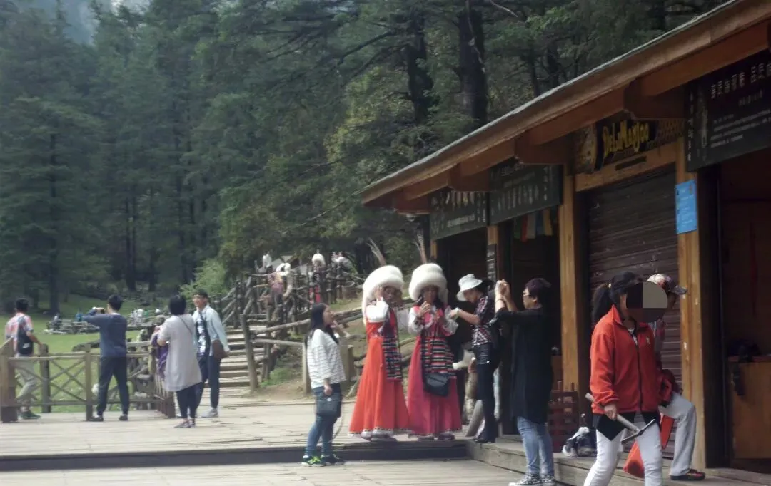 第六个坑:看不到雪山,既然来了用手机相机随意拍几张算了,四周的纪念品看看也不敢问不敢摸。走吧,走不了了,出口有几个人把守,每个人必须在他们的布景前拍照且收费。不拍?那你还进去吧,别出来了。