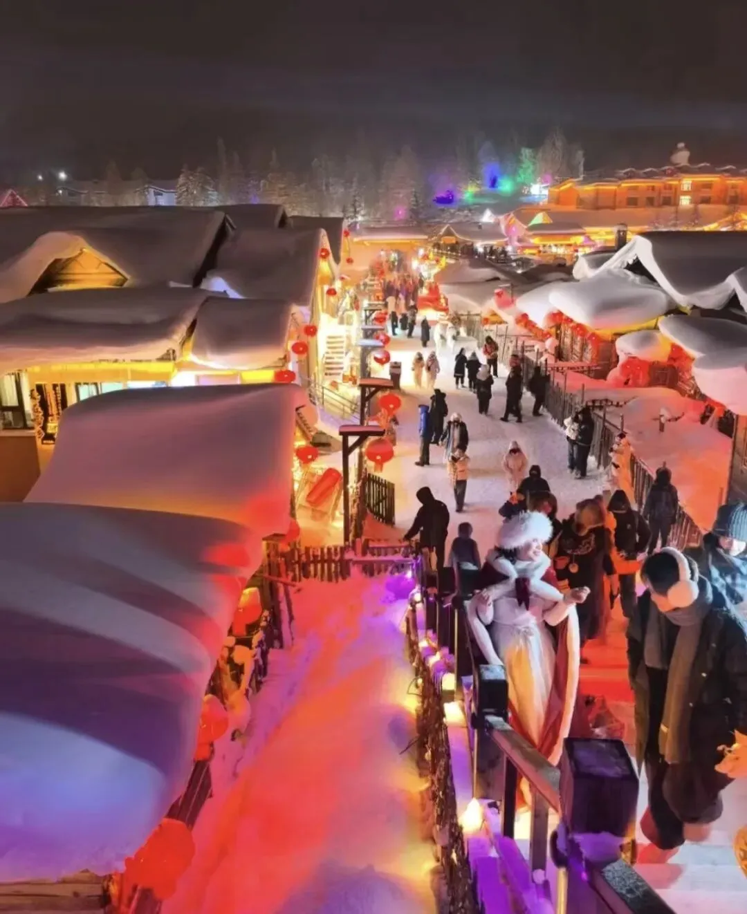 核心玩法:雪乡的核心就是看雪景,尤其是雪蘑菇和夜景红灯笼。景区内就是一条商业街,大部分时间都在拍照和逛吃。