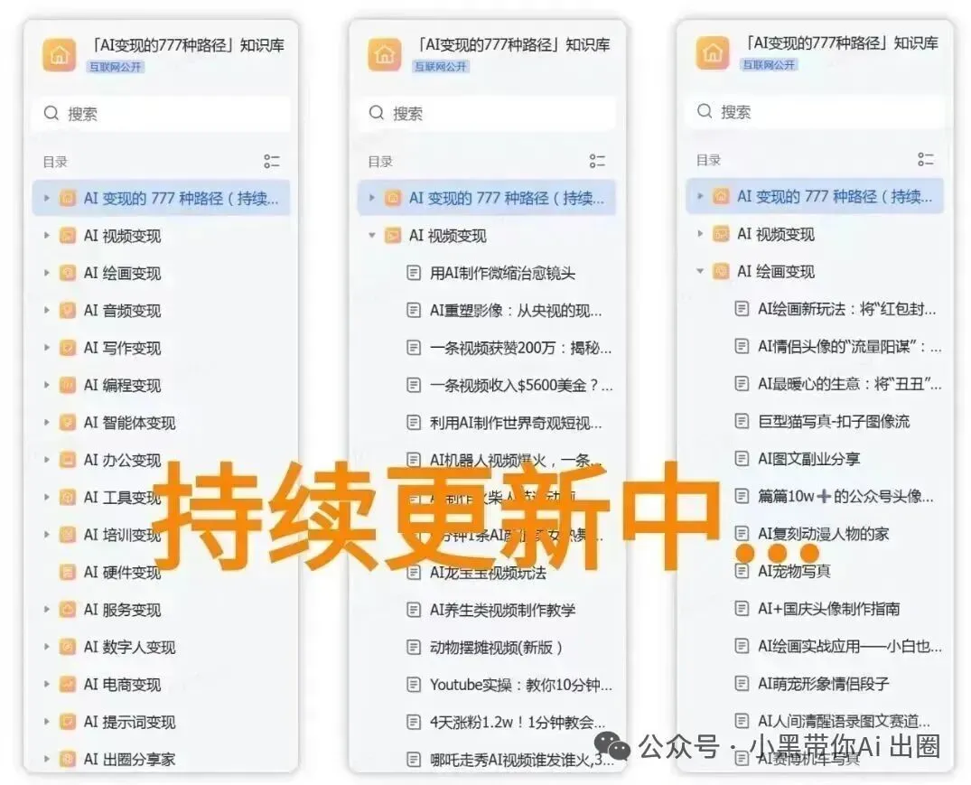 我们近3年来,在全网付费收集整理的《AI 变现的 777 种路径》,正在持续更新中,