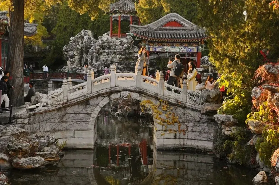 必打卡理由:静心斋被林徽因先生誉为 “中国园林建筑,要数北海静心斋最好”。园内曲水环绕,曲桥横跨水面,与周围的亭台楼阁、假山池沼相互映衬,构成了一幅精致的江南水乡画卷。漫步曲桥,可感受 “一步一景” 的雅致,体验园林的清幽与宁静,是放松身心、拍照留念的好去处。