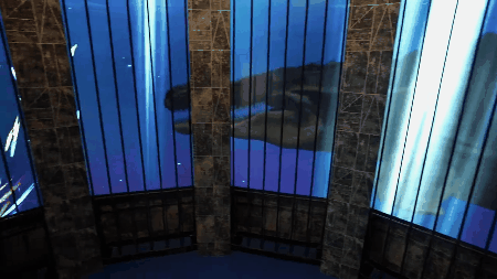 通过“海底隧道”的岩壁可以看到海洋中的世界,各种各样的海洋生物从你面前游过,就像置身海洋之中。
