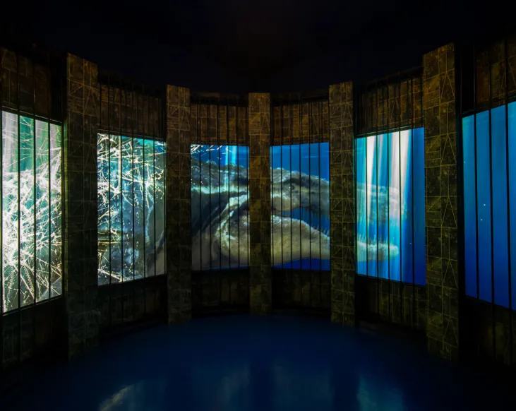 海洋幻想曲由水母流体墙、海洋隧道、海洋绿洲组成。海洋世界在虚拟水族馆中熠熠生辉,当游客触摸投射在墙上的五颜六色的液体,根据颜色混搭,可以自由创建水母。
