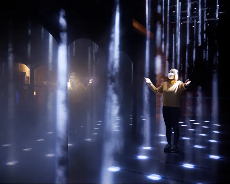 “光之幻想城”作为日本第一个聚集了沉浸式体验型数字场景的旅游景点。集结了花卉、海洋、宇宙、森林、体育、音乐等6个不同世界观设定的数字游乐场景和1个咖啡厅组成。 把“花与光”、自然科学等主题搭配高端影音技术,用“现实+数字”满足游客探索未知的好奇心,给予其独特的体验。在这样一个神秘、温馨的空间,游客总是被感动,偶尔被疗愈。 02