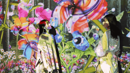 游客走进,被花海包围着,随着移动的步伐,脚下的花朵不断发生变化、发光的花朵。沉浸在花的世界,用上所有的感官与花亲密接触,聆听花的声音、辨别花的气味、触摸花的形状、读懂花的语言、思索花的精神。这仿佛是为女孩子们量身订造的光与花的文艺、浪漫世界。