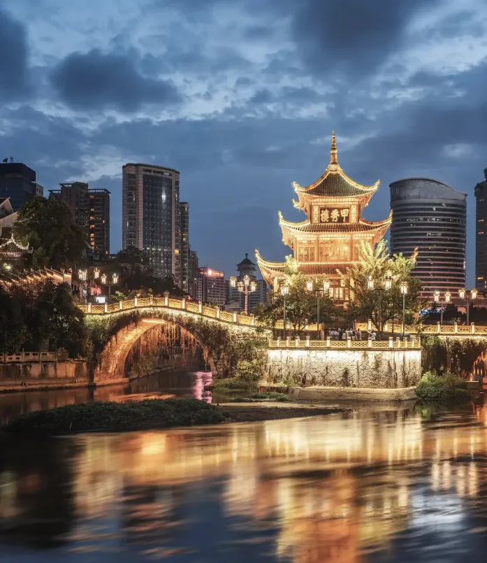 夜里灯一亮,水里一照,出片率高,走两步就是文昌阁和状元桥。