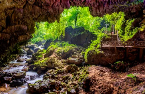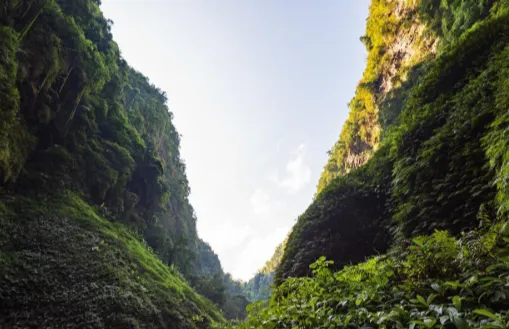 想看一眼百色的“爆点”,我会推荐去通灵大峡谷或周边的喀斯特峡谷类景观。到现场不是“哇好美”那种虚的,而是凉。峡谷里水汽重,靠近瀑布时衣服会被打湿,石壁上长着苔,手摸上去滑得很。抬头看天像被切成一条缝,光从上面落下来,整个人会突然安静。如果你平时被工作挤得喘不过气,这一段路走完,脑袋会清爽很多。