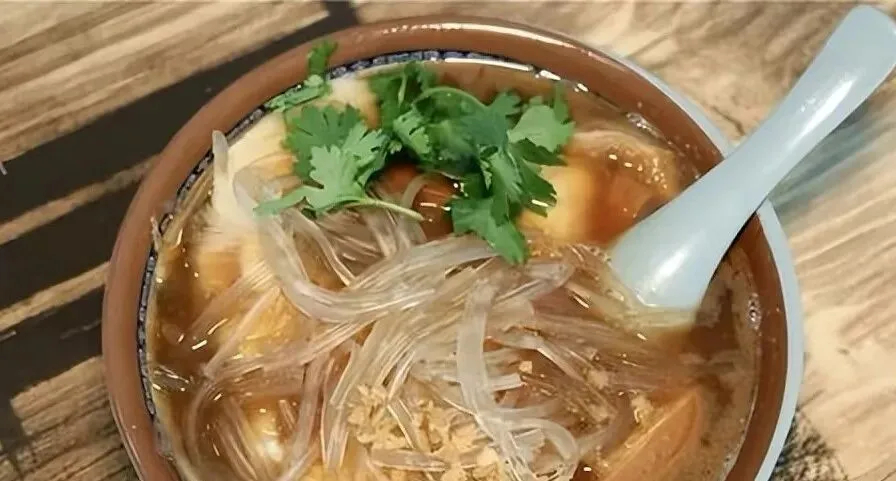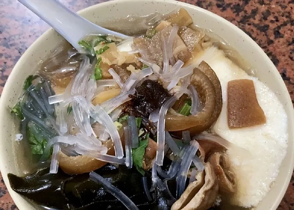 漳州豆花有甜咸之分,但加了粉丝一定是咸口味,当然还可以加卤料。咸豆花,掺上猪脚骨所煮制的粉丝,再配上各种配料与佐料,吃起来让人回味无穷。