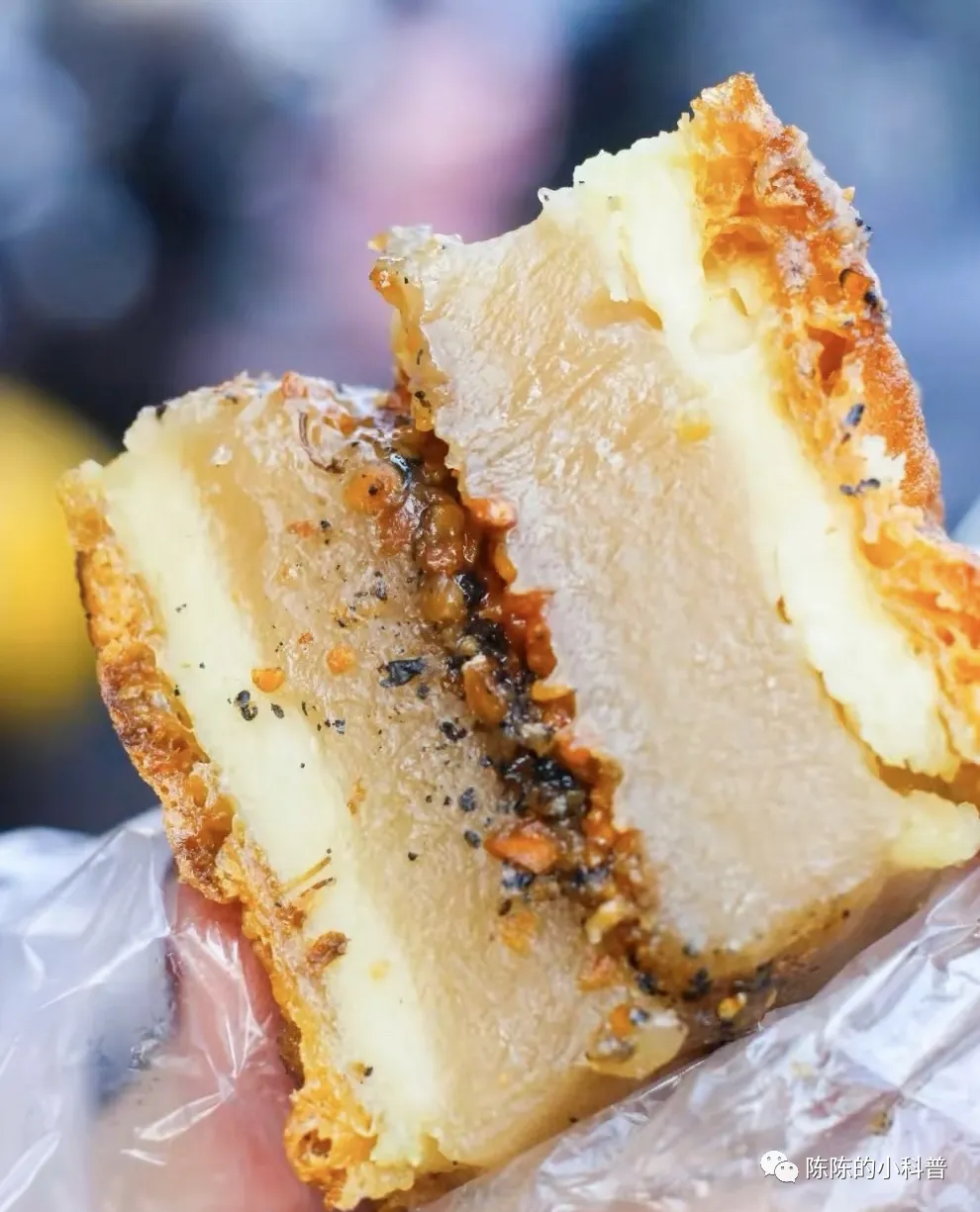在漳州的小吃中,面煎粿可谓是色香味俱全。金黄色的油炸皮,深棕色的粿馅,最中间还夹着一层料。轻轻地咬一口,皮脆馅软,味道香甜,吃后口有余香。