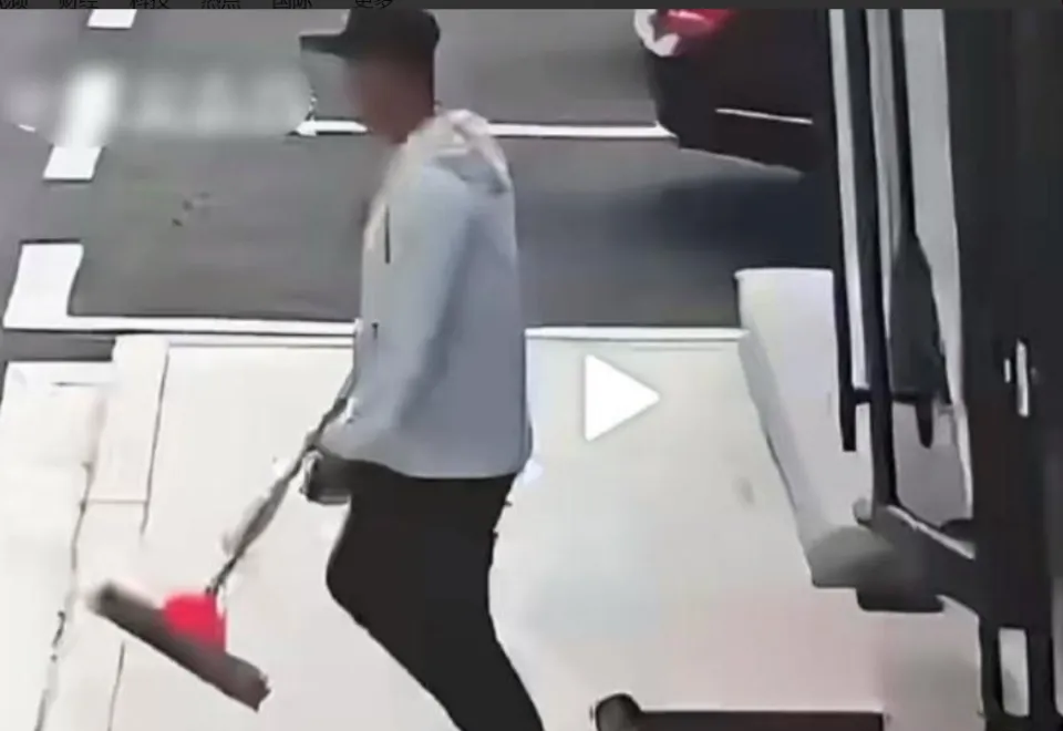 随后,男子也从厕所出来,而他手上居然拿了一个拖把。