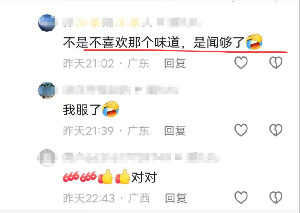 结果有网友居然回复说,他们不是不喜欢地个味道,而是闻够了。