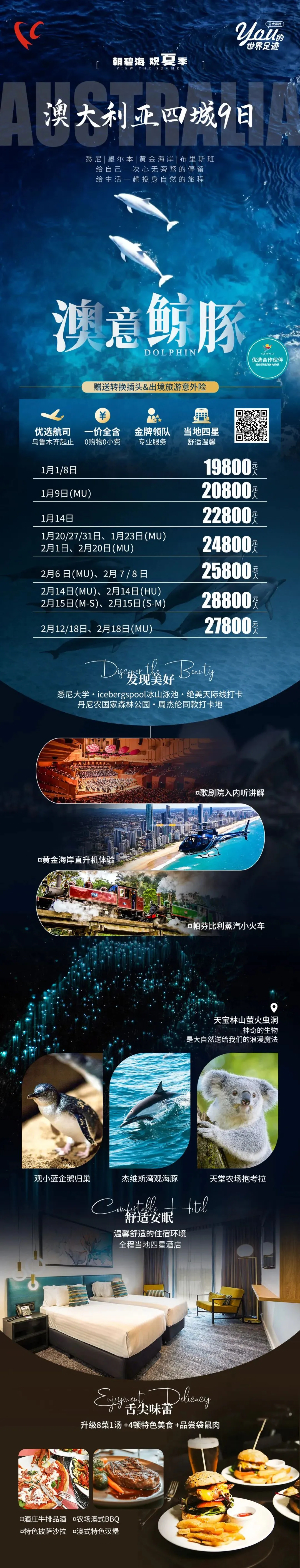 澳意鲸豚系列春节观夏限定---一价全含澳大利亚四城9日含墨尔本