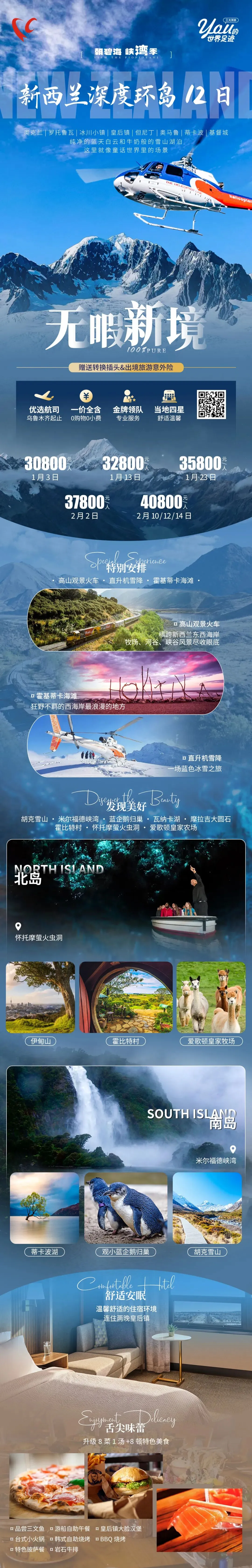 无暇新境春节限定升级版---一价全含新西兰南北岛新游全境12日含米佛峡湾