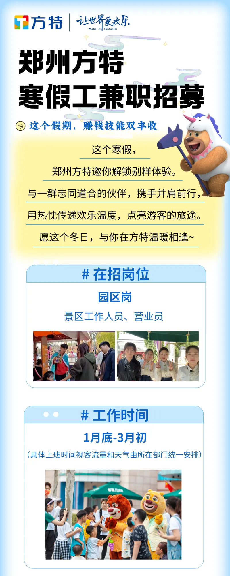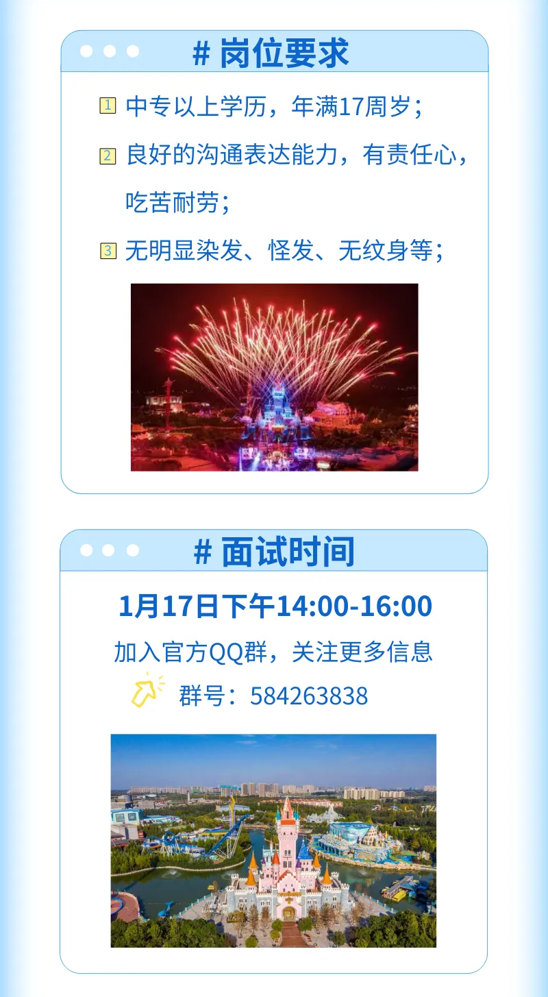 郑州方特寒假工兼职招募景区工作人员、营业员,17岁以上,中专学历公众号调整,可设为星标↓↓,每天都能收到最新消息啦!
