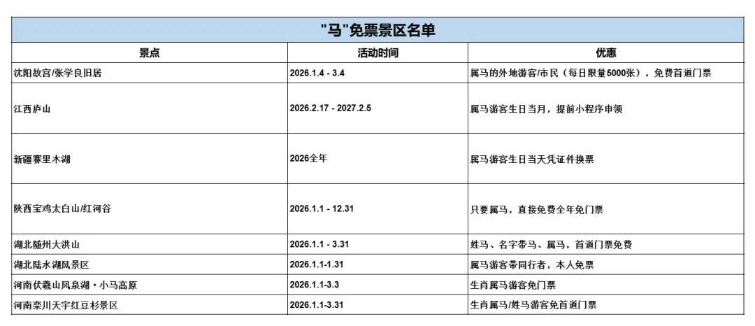 如果你姓马,或者恰好在2026迎来了本命年,恭喜你,今年你就是中国景区的“行走VIP”