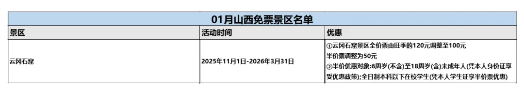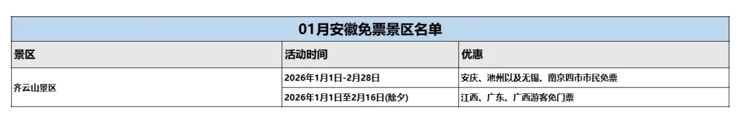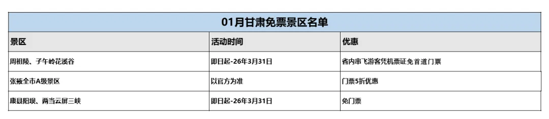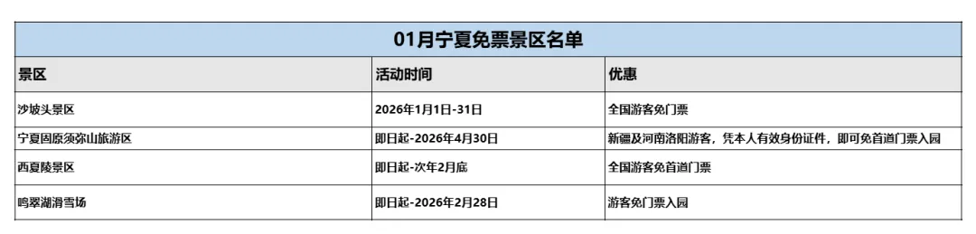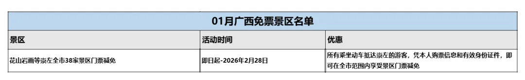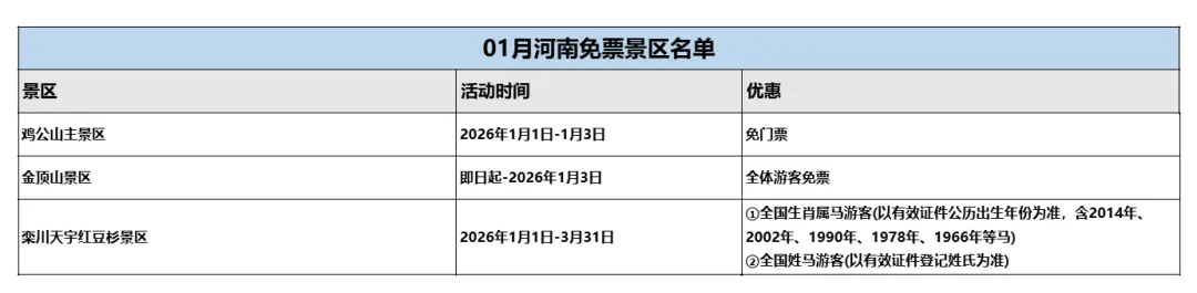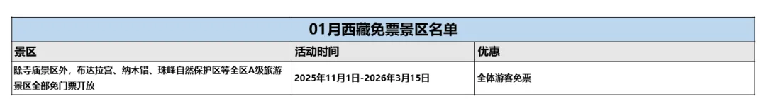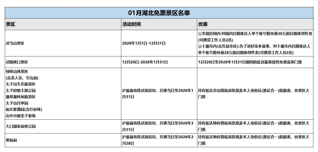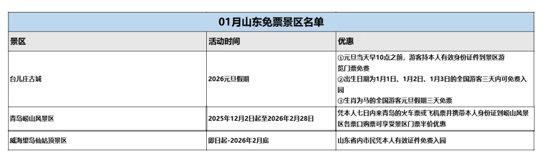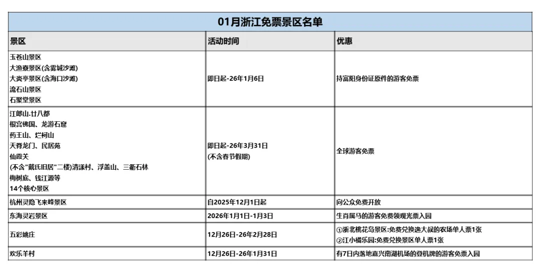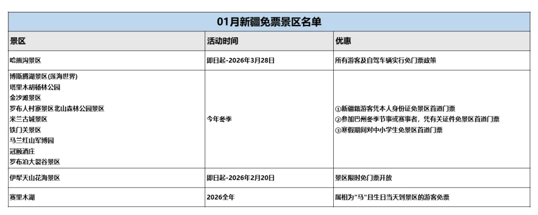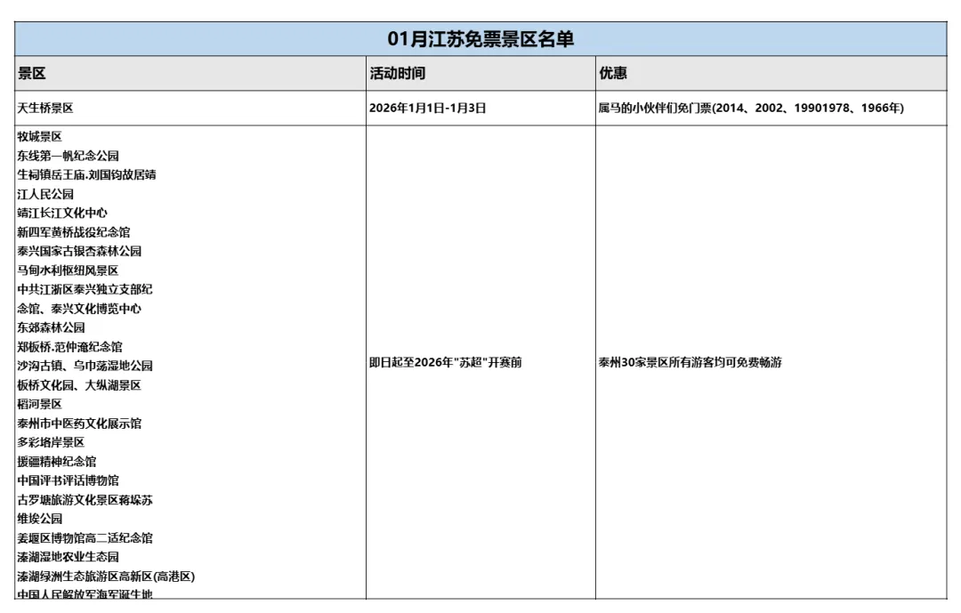 26马年已经奔腾而至。作为机酒""薅羊毛”的老玩家了,老王已经翻遍了全国34个省级行政区的文旅通告,帮大家整理好了1月全国景区免票/优惠信息清单!
