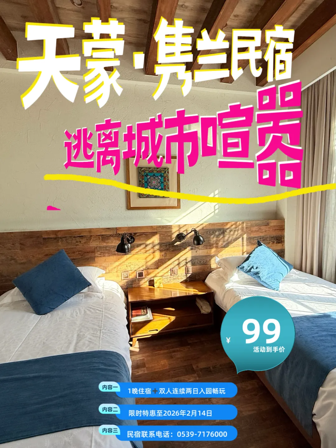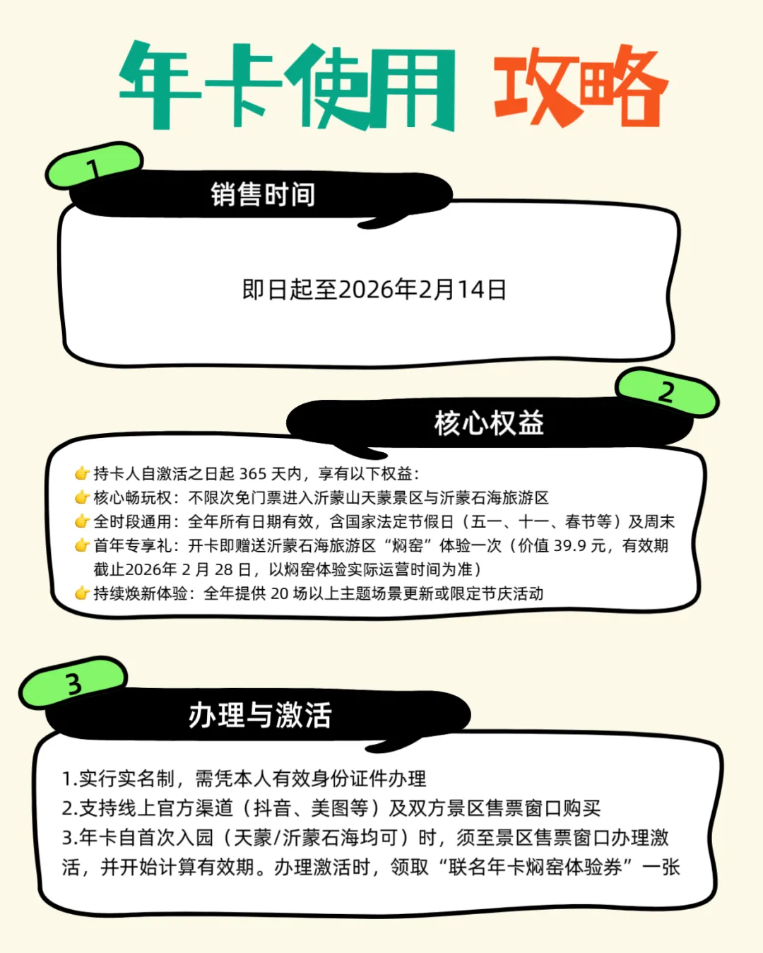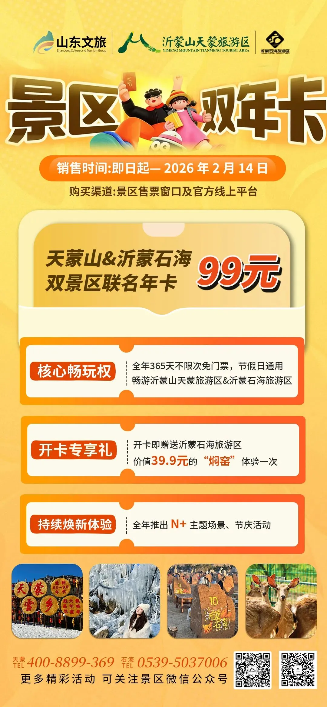 99元双景区联名年卡!天蒙景区+沂蒙石海,365天无限次畅游!赠送价值39.9元焖窑体验一次!