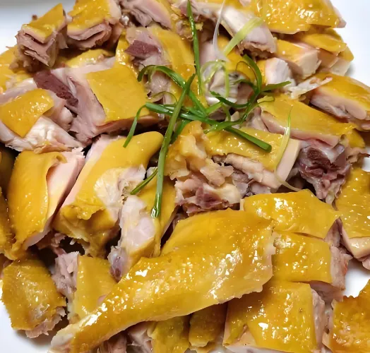 东江盐焗鸡是客家名菜,以其皮爽肉滑、咸香入骨的风味著称。选用三黄鸡或胡须鸡,用沙姜、盐腌制后以粗盐焗熟,保留了鸡肉的原汁原味。