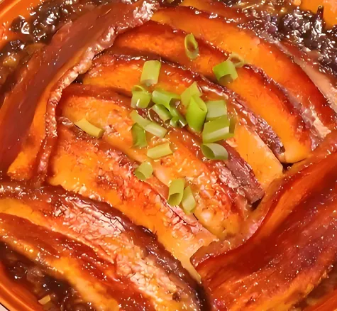 梅菜扣肉是客家菜的代表之一,以其肥而不腻、入口即化、酱香浓郁的特点广受好评。选用当地特产的甜梅菜与五花肉慢蒸而成,梅菜吸足肉汁,咸香中带微甜。