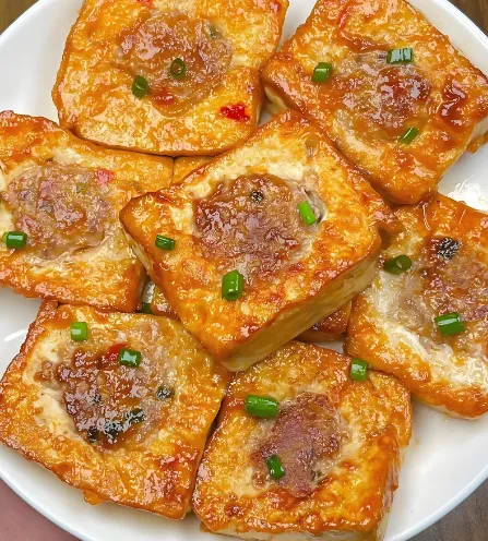 酿豆腐是客家菜的代表作之一,口感鲜美温润,外皮微焦、内里嫩滑。选用山泉水豆腐和手工现剁肉馅,可煎可焖,风味独特。