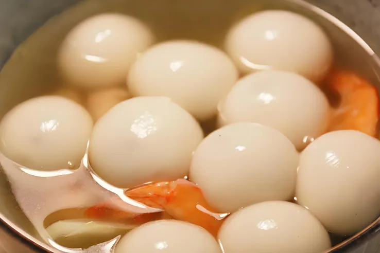 客家咸汤圆是传统小吃,口感软糯,汤底鲜香。常以香菇、虾米、猪肉等食材搭配胡椒高汤烹煮,风味独特且富有暖身效果。