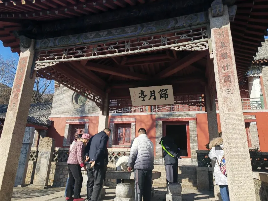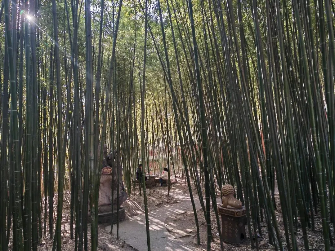 还有风骨清峻的师弟松,虬枝斜横,针叶凝着薄露,守护着寺内岁岁年年的晨昏;暗香浮动的腊梅,沁人心脾,花香丝丝缕缕漫过来,于无声无息中,缠上游人的发梢、衣襟。尤其翠影摇风的竹林,竿竿挺拔,叶叶含翠,风过处,簌簌作响,影影绰绰…,让人心生惬然。