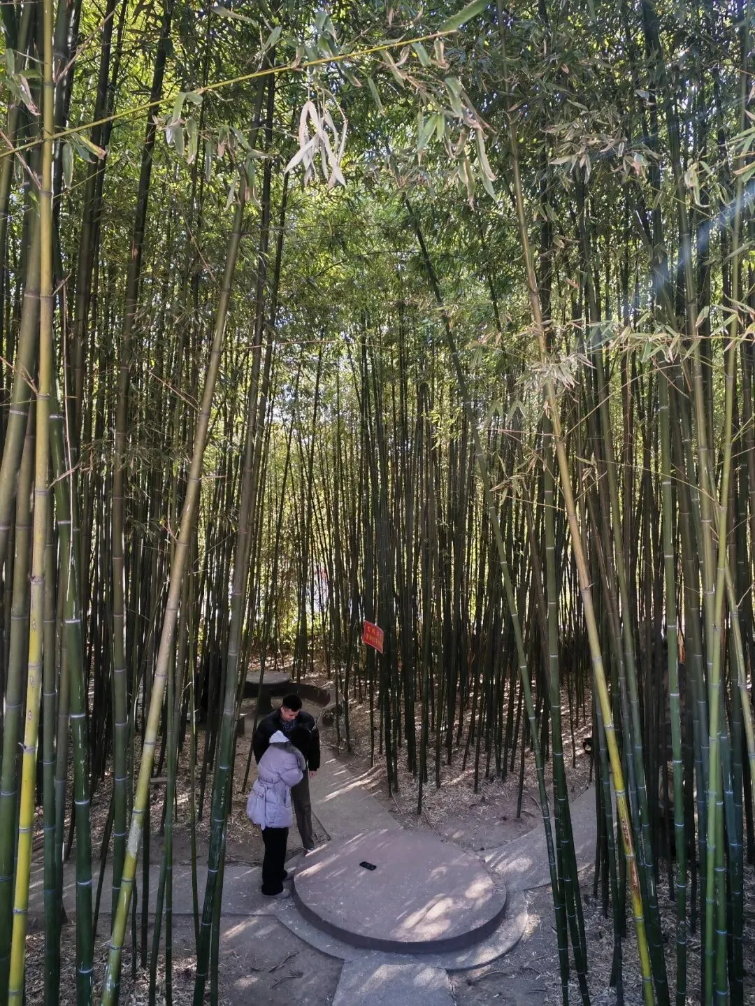 这儿最美的时候,是在绵绵的秋雨后,竹林青翠欲滴,雾气流转,光影交错,宛如武侠世界,因此,又被网友戏称《卧虎藏龙》同款竹林。脚下是湿润的青石板,耳畔竹叶沙沙,恍惚间,仿佛看到李慕白与玉娇龙在竹梢间轻盈追逐的身影。
