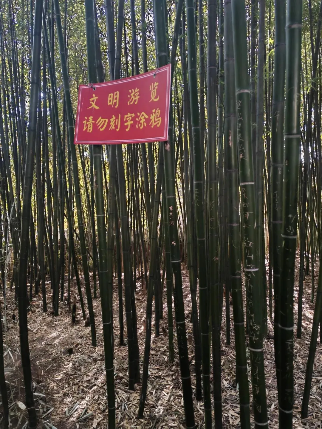 在竹林间,有几处悬挂着醒目的标志牌,“文明游览,请勿刻字涂鸦”的提示,提醒着每一位到访者,文明旅游,不仅是对环境的负责,更是个人素养的体现。