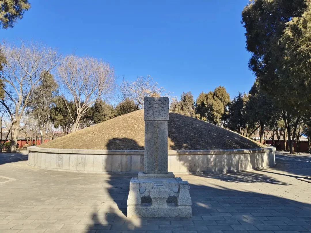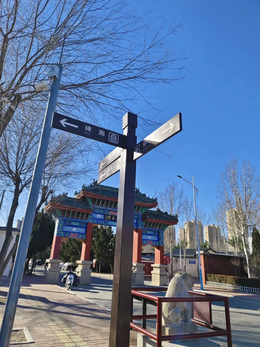 青年路导引牌(由东向西拍摄) 明明来过许多次,此番站定,却仍像初见般,被历史沉淀的厚重撞了个满怀。景区的变化藏在细枝末节里。从前要在远处窗口换纸质票,如今门口刷身份证便能径直入园,便捷了许多;神道两侧添了红色栏杆加固,多了份稳妥;王妃墓旁的走廊里,墓志铭终于有了清晰的释文,不必再对着篆隶猜测字句;就连沿道的静谧里,也多了鹦鹉的啾鸣,为这方古迹平添几分鲜活热闹。
