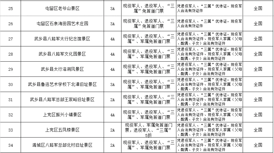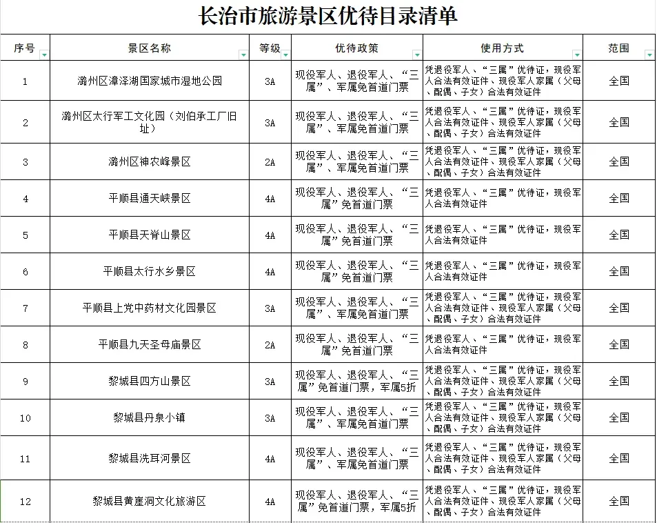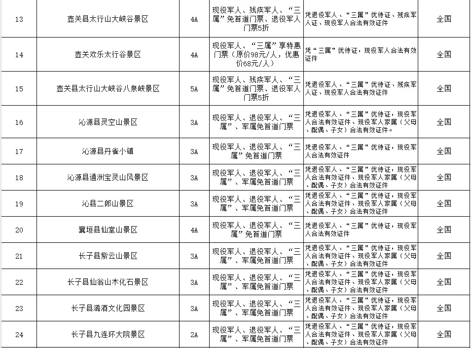 【优待信息】全国的退役军人游览长治景区,会有更多惊喜!